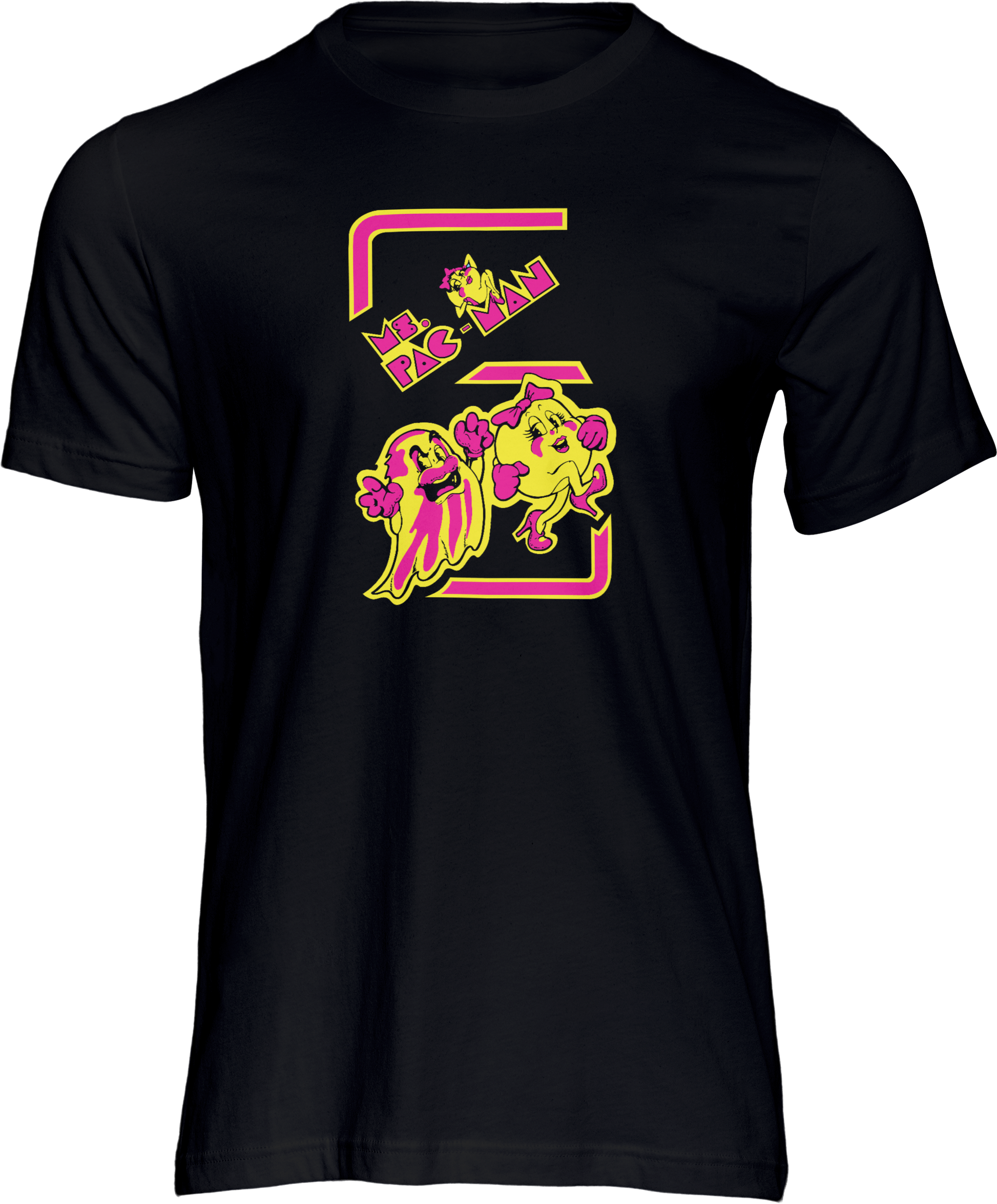 A premium heavy cotton T. Those who know and love Ms. Pac-Man will appreciate this logo t-shirt.